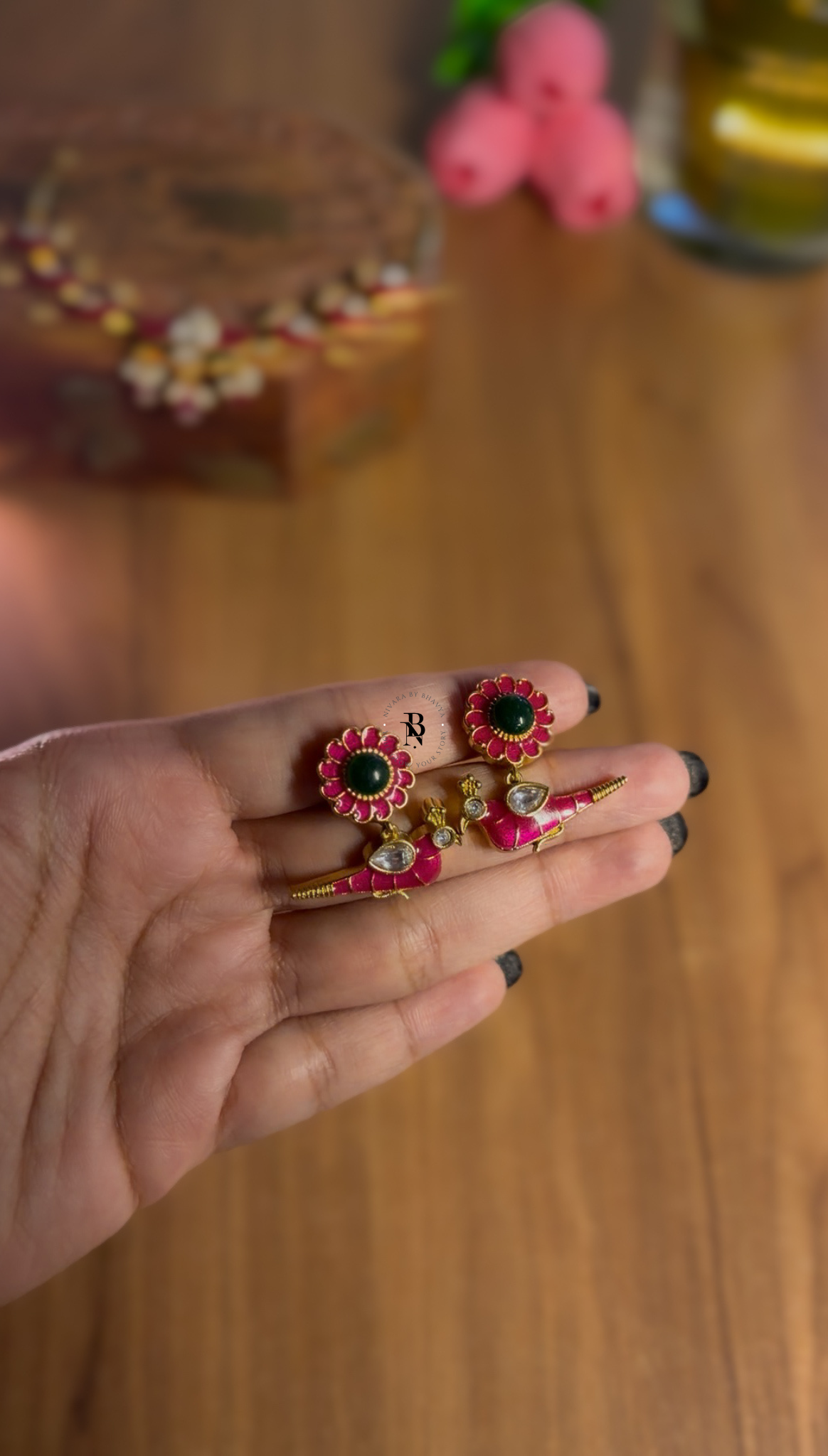 A graceful blend of lotus blooms and vibrant parrot motifs, perfect to add a unique traditional statement to your look ✨🤍