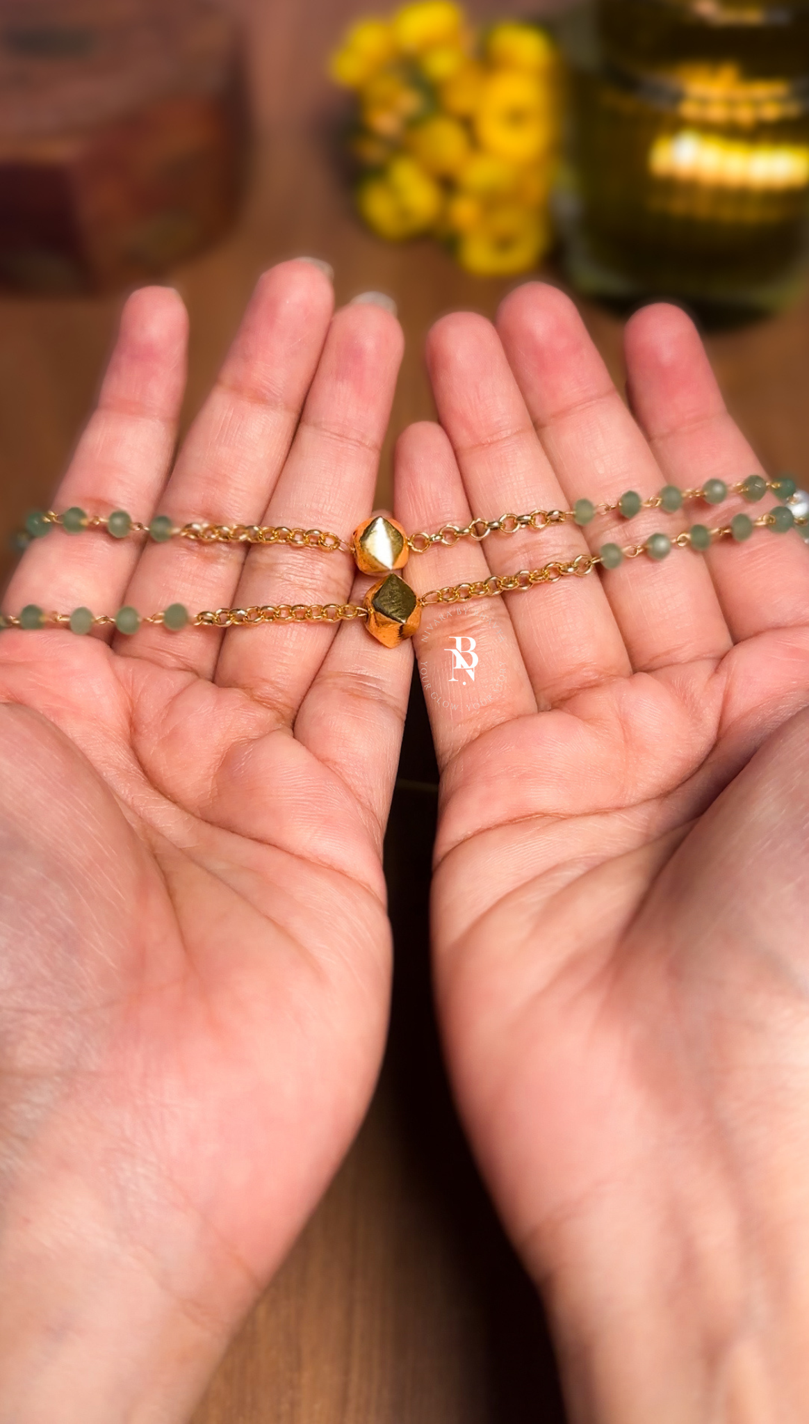 Pearl & Mint Green Beads Double Layer Necklace ✨